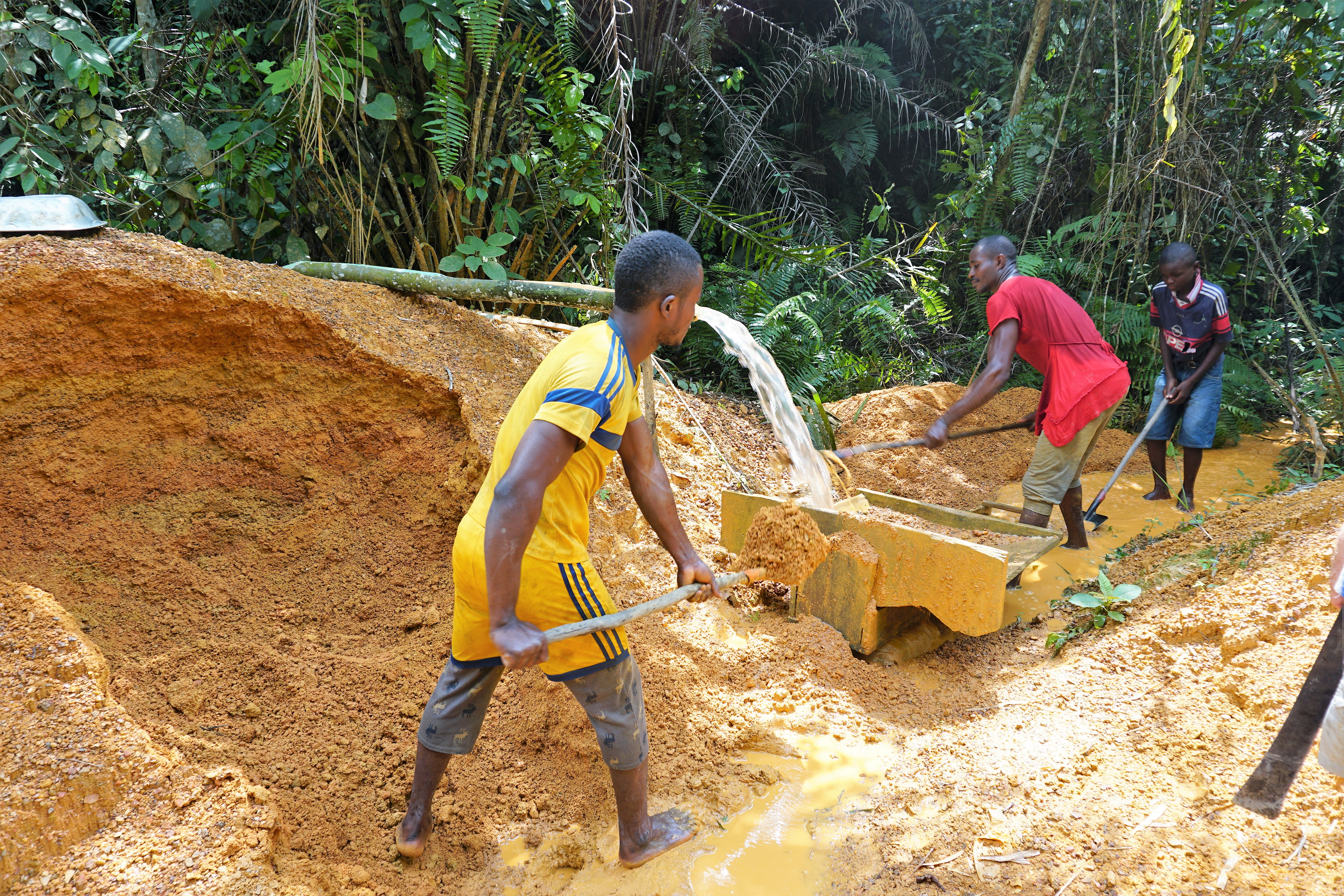 Today people still come here to prospect, but the professional systems put in place by Mr Vigoureux are all but gone. Now people simply dig and wash and pan, using small portable generators to pump water from the river. Permits are not taken seriously here, it’s pretty much a free for all situation, bringing about 150 outsiders (even from neighbouring countries) at any one time to this village of some 250 inhabitants. I’m told the relationship between the locals and the outsiders isn’t great, and indeed some of those who come are of dubious character.
