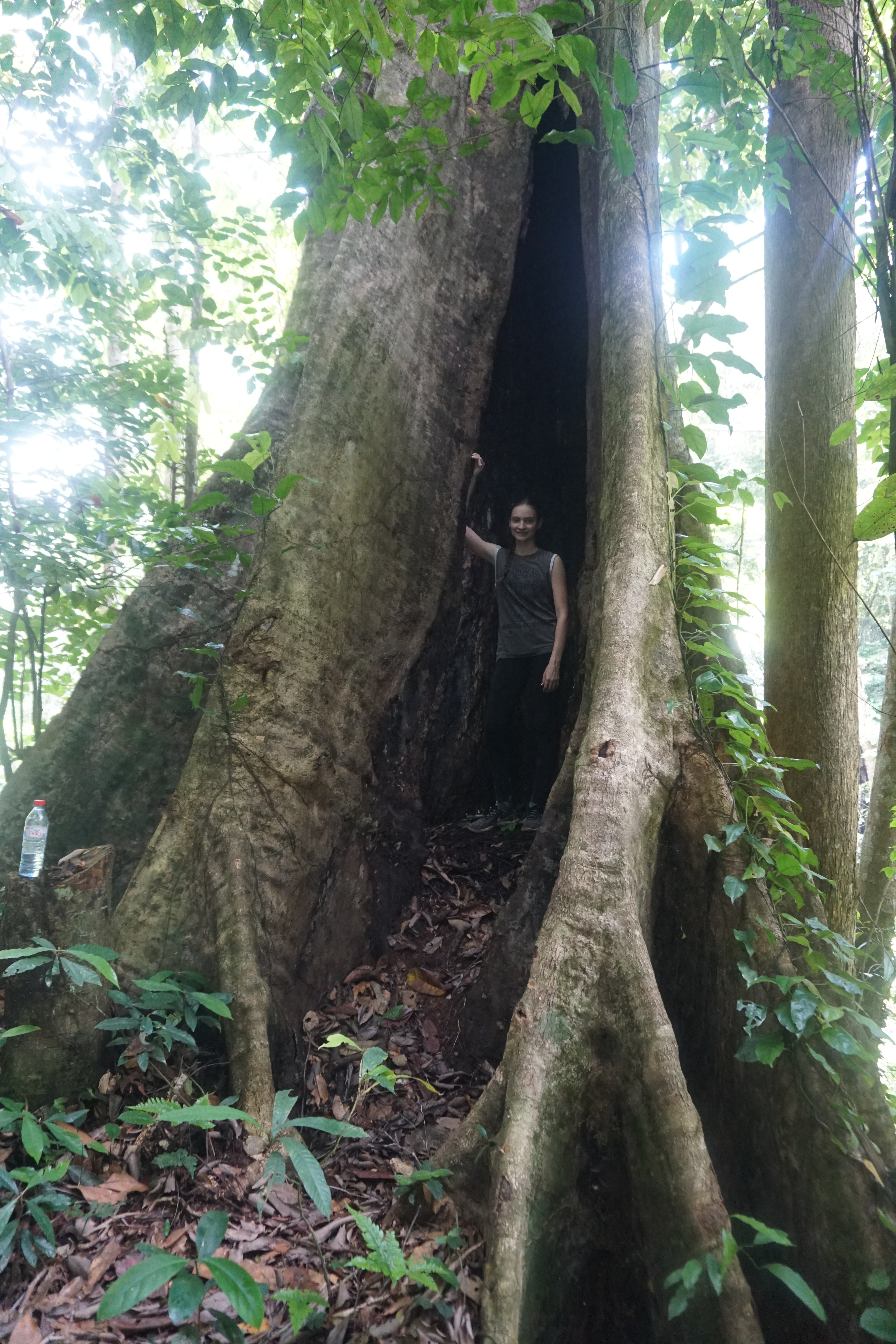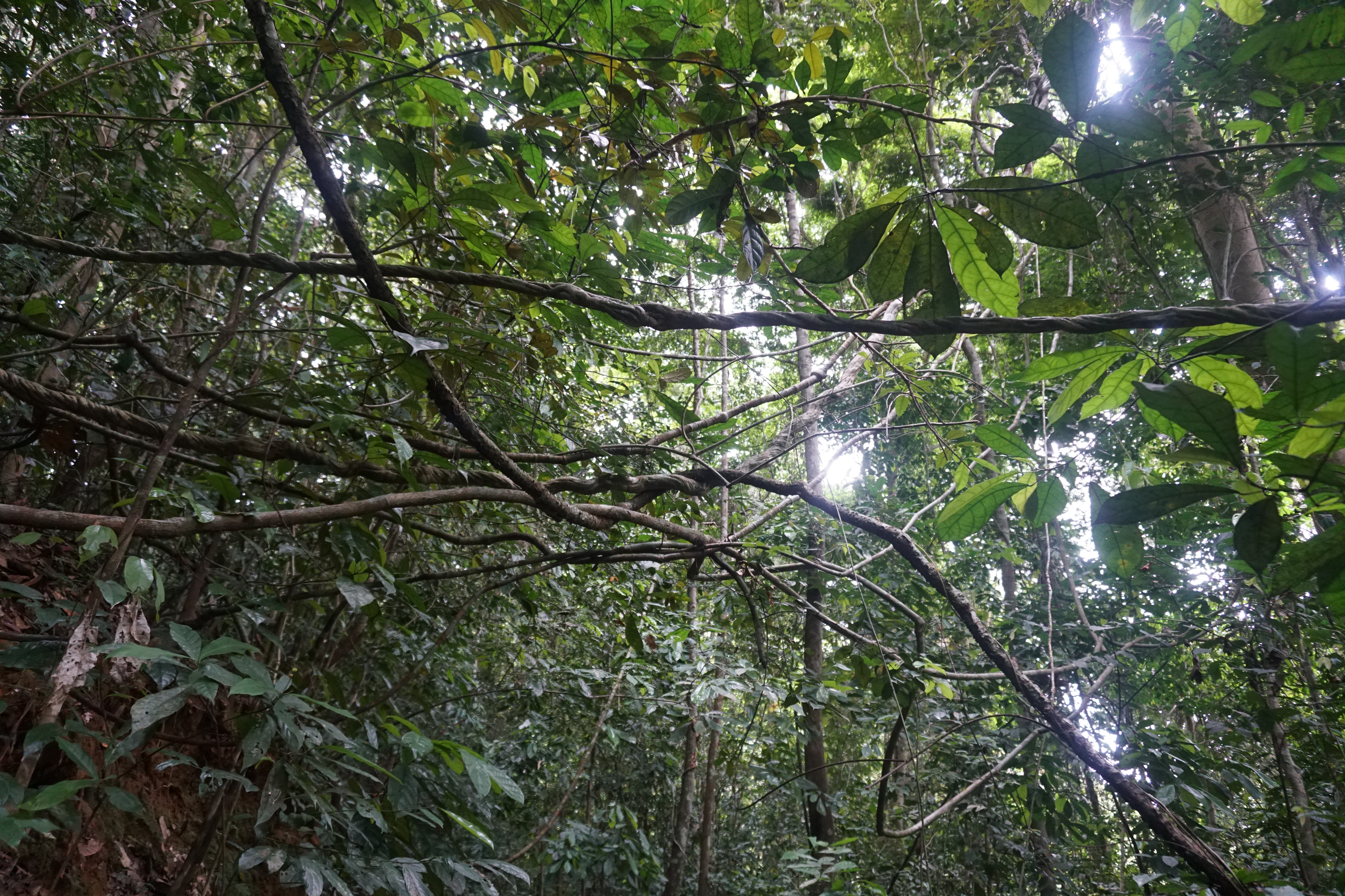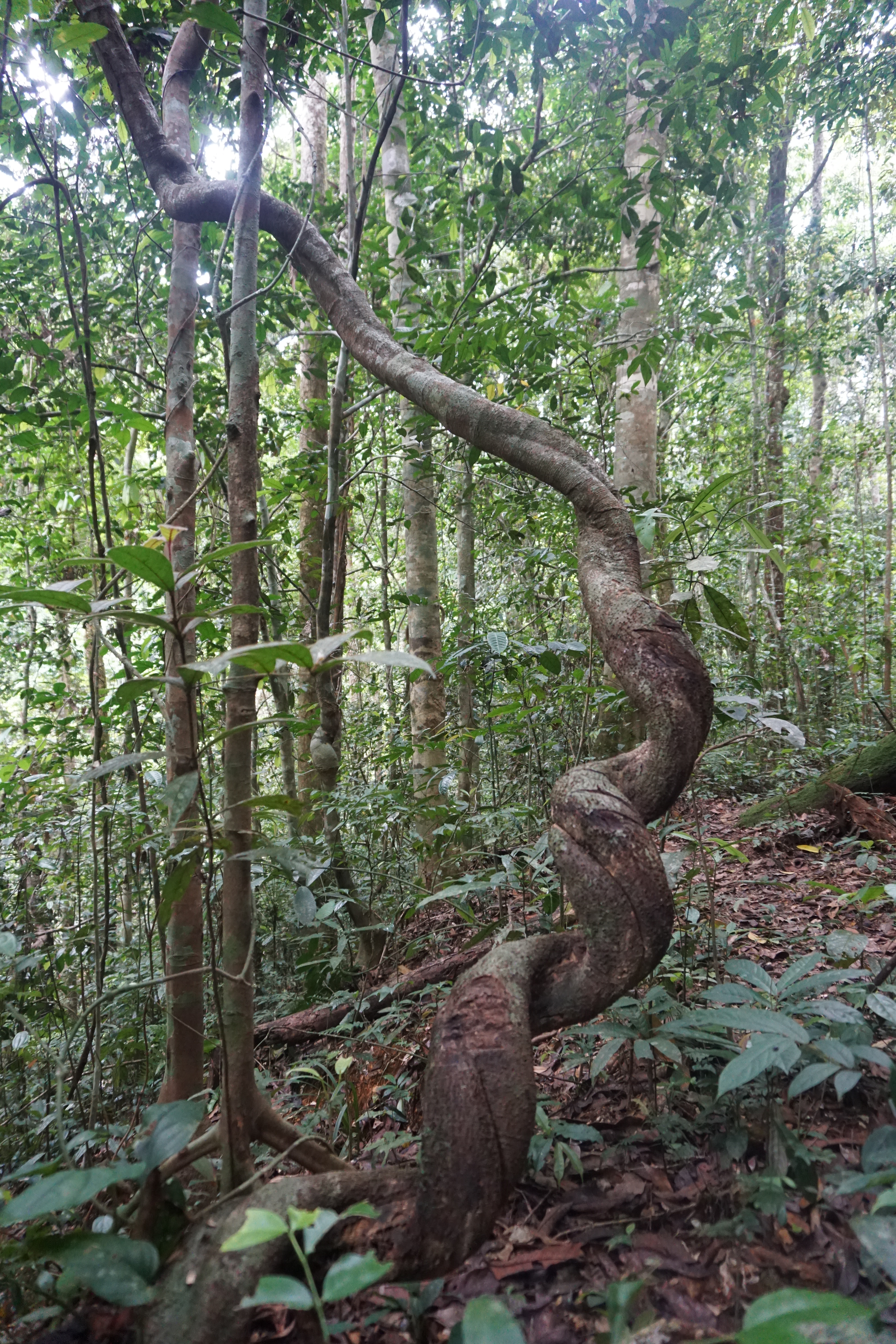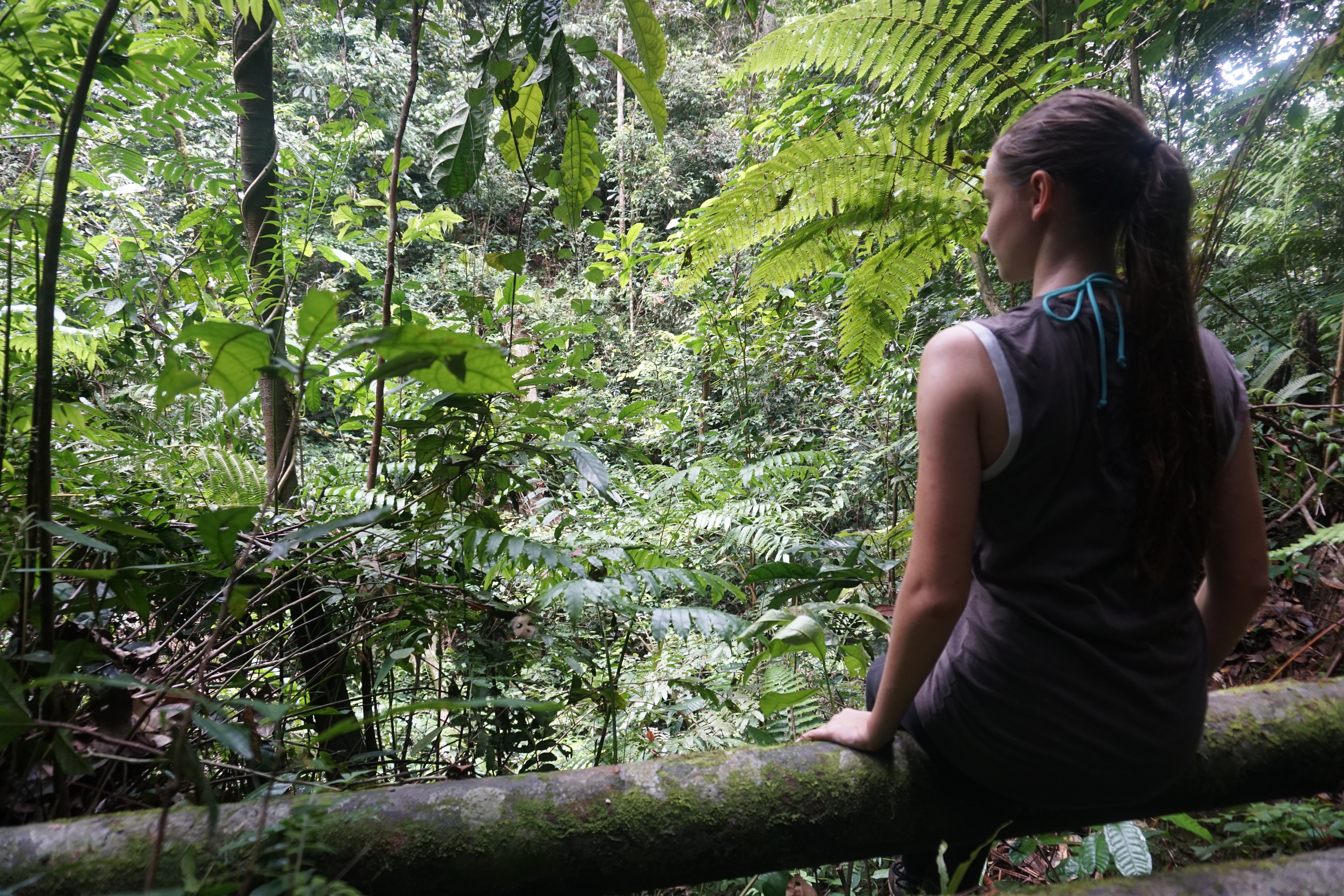 Plantlife is easier to admire of course, can’t really miss the thick vines that curl around trees, hang from high branches and form a web above our heads. Or the huge cathedral trees that can house several people inside their hollow trunks. Not to mention the tall and narrow spider trees that stand delicately on a web of fingerlike roots sticking up from the ground. Then there’s the various plants that many of us are used to seeing as house plants, but that actually originate from the rain forest, from Dieffenbachia seguine (dumbcane) to Sansevieria (mother-in-law’s tongue), and from Monstera deliciosa (monstera) to Plectranthus scutellarioides (coleus). I’m always in awe when I see these – in a way familiar – plants in their real habitat and at their real size.