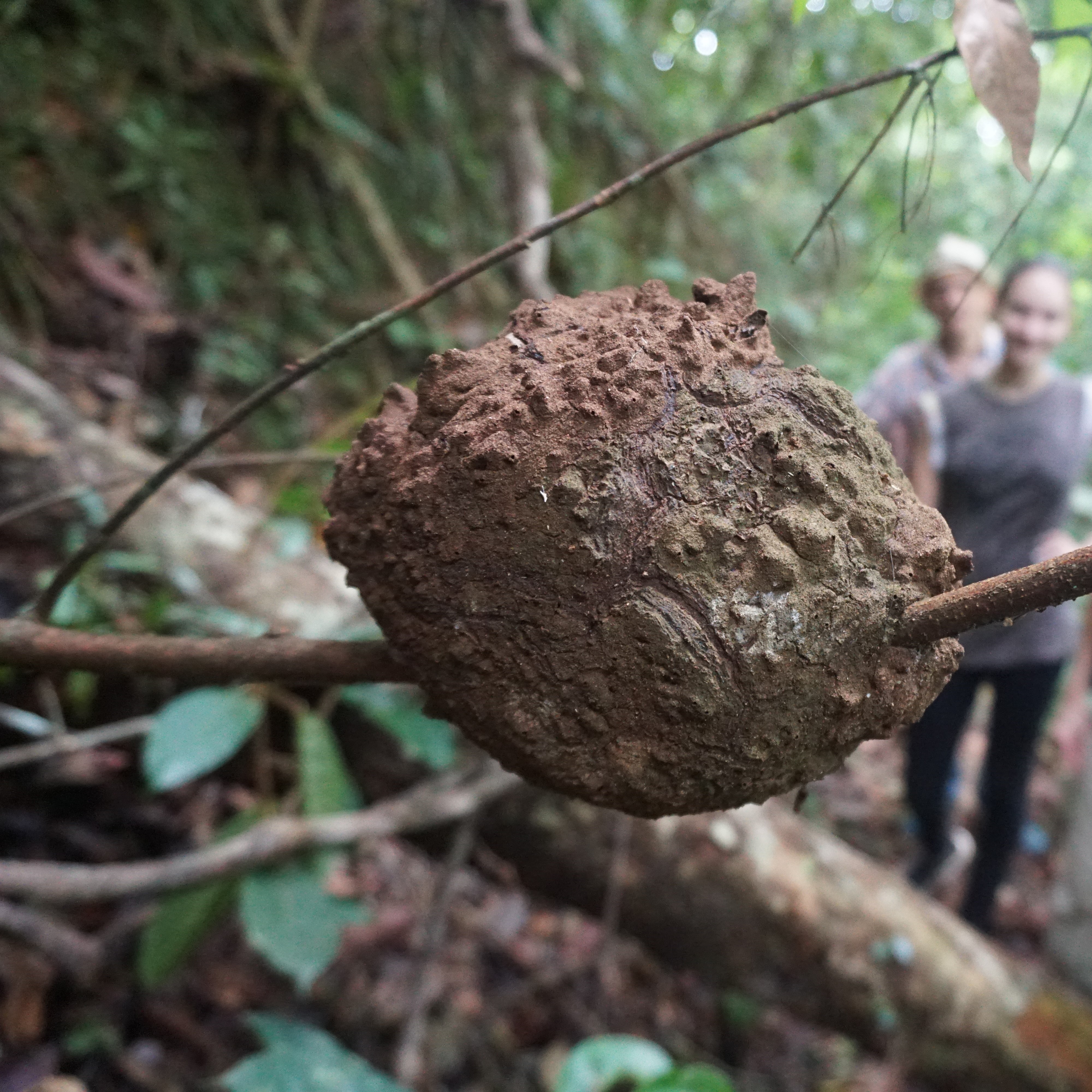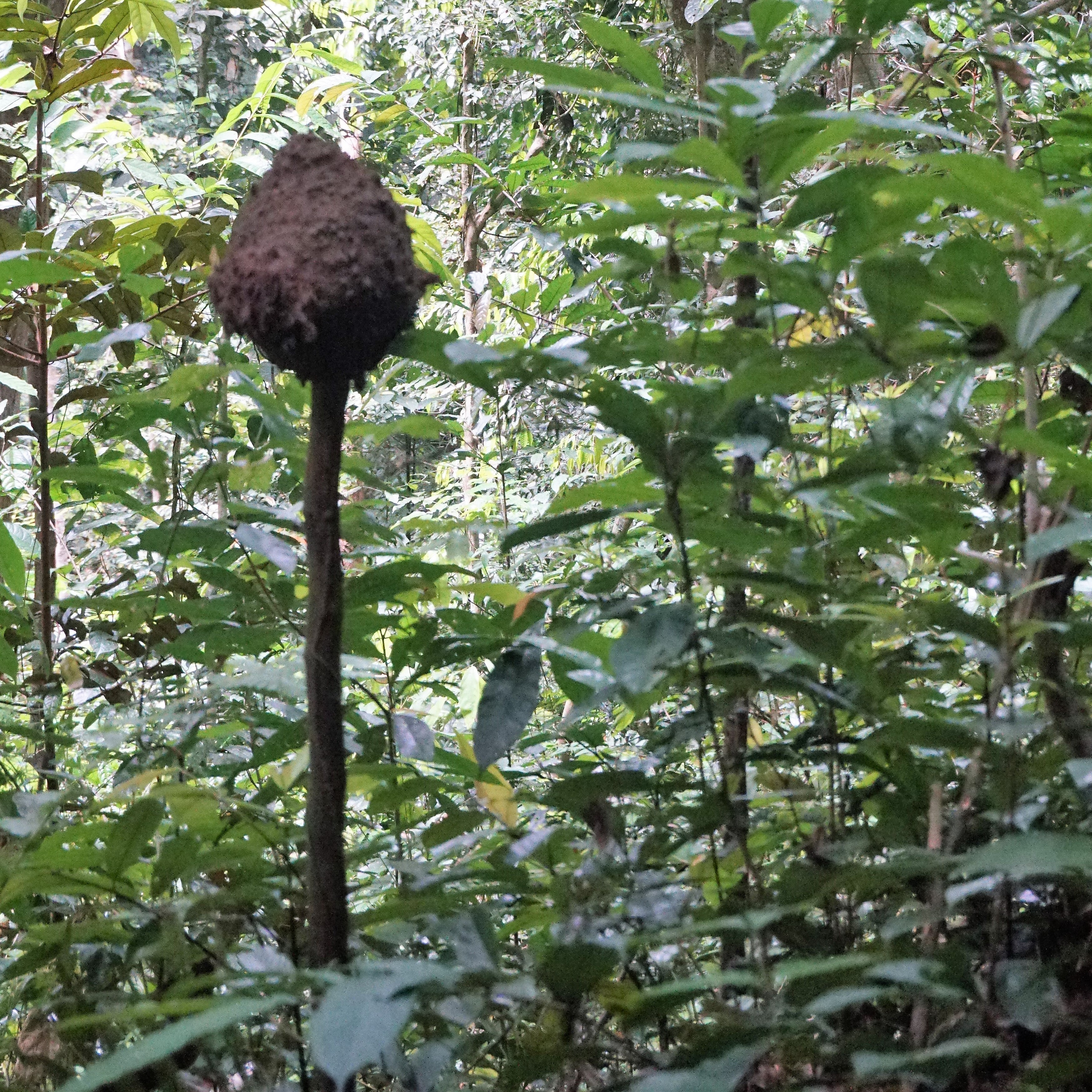 Came across this little ‘house’ while hiking in the Mayombe forest. Hmm, I’m not quite sure about the triple roofing system, but otherwise think it must be a clever little ant colony living there, protecting their home from rain like that! Super cute! Someone pointed out to me that these ‘constructions’ are called forest gnomes – not sure if they resemble little old men or why they would be called that, but apparently they are. Another type of ants nest that I saw for the first time was a round ball-like construction hanging around thin tree branches, or sitting on top of dead tree trunks, I saw several similar ones during our hikes.